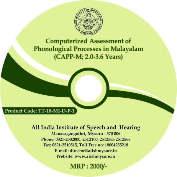 This is an indigenous software tool which assesses phonological processes in the age range of 2.0 - 3.6 years in Malayalam speaking children. This user friendly interactive software installed and played Windows compatible system.